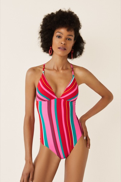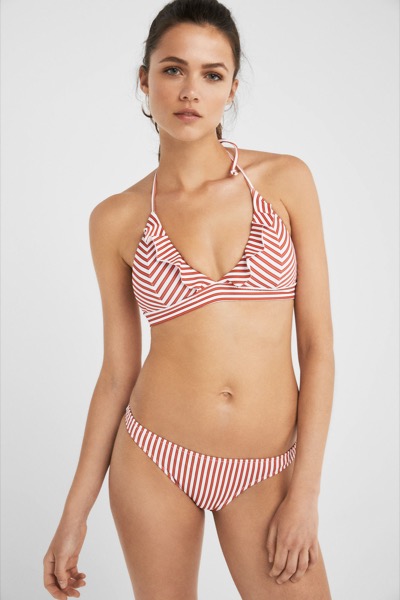 Se tem ancas estreitas e ombros largos, aposte em estampados e aplicações nas cuecas tipo tanga, mais decotadas. Se o seu peito for grande, defenda-se com tops de alças largas e direitas, em tons escuros e sem padrões.