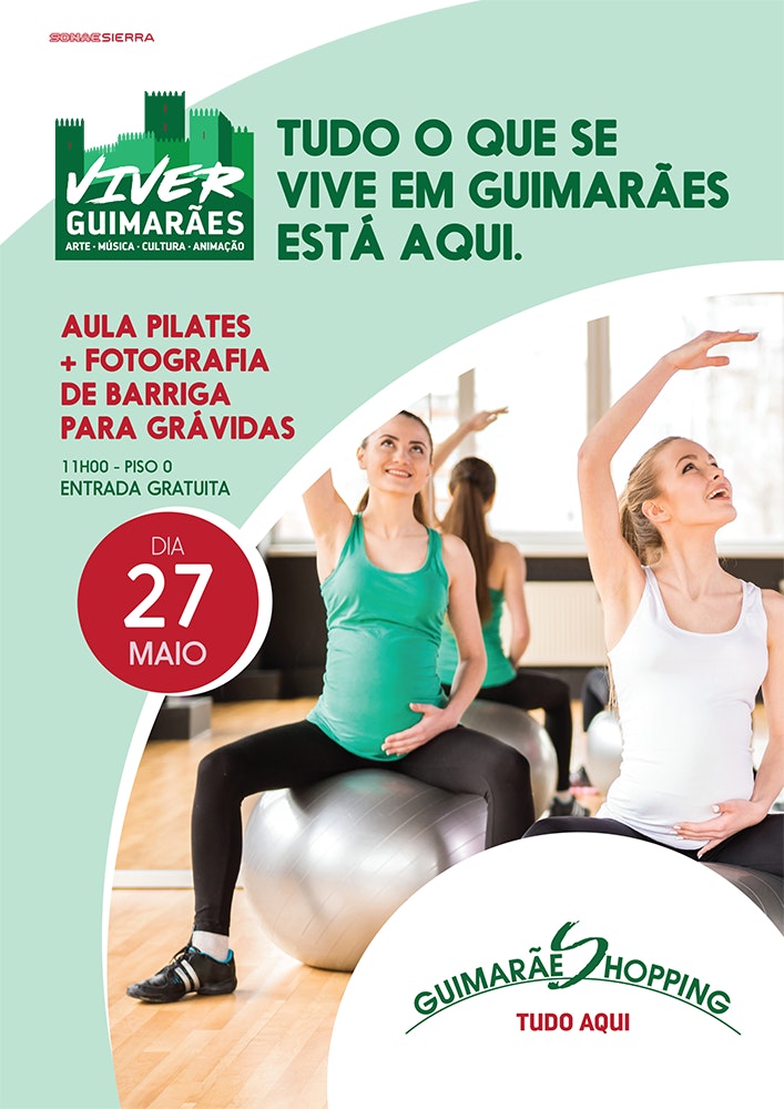 Integrada no programa Viver Guimarães, o nosso Centro recebe dia 27 de maio, domingo, uma aula de pilates especial para grávidas, lecionada pela instrutora Diana Lopes, especialista na área materna. A iniciativa é gratuita, começa pelas 11h e acontece no piso 0, junto à loja Sport Zone.