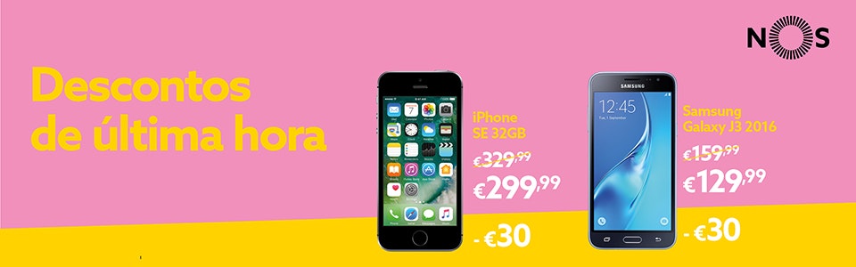 Assim, até dia 20, o iPhone SE 32 GB está a 299,99€ (era 329,99€) e o Samsung Galaxy J3 2016 está a 129,99€ (era 159,99€). Ou seja, é uma poupança de 30€!