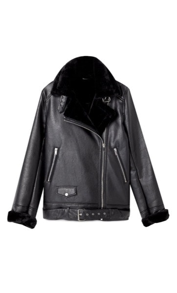 PELE | Em gabardinas, vestidos, botas, casacos de plumas… Não há limites para esta que é uma das tendências de moda para este outono/inverno. | Casaco Stradivarius, 59,99€