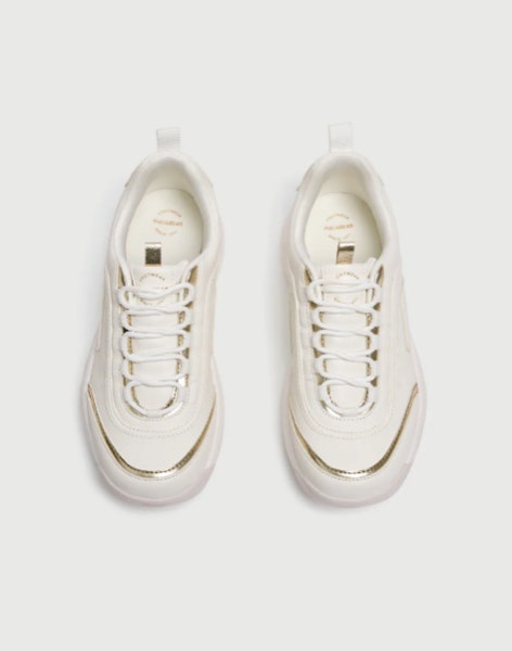 D’OURO | Temo-lo visto em apontamentos nas últimas temporadas de moda mas, nesta, o dourado marca uma posição por entre as tendências de moda para este outono/inverno. | Sneakers Pull&Bear, 35,99€